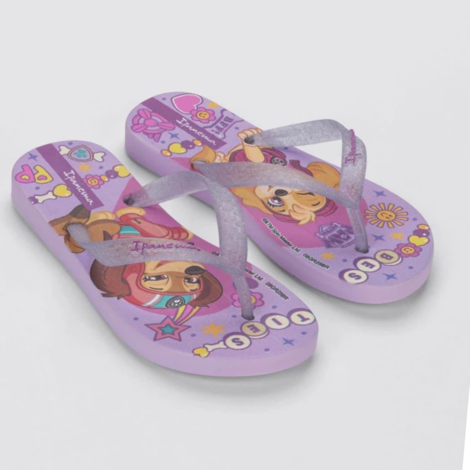 O Chinelo de Dedo Infantil Patrulha Canina Ipanema traz diversão e estilo para os pequenos com uma nova grafia, onde cada par destaca um personagem diferente. Para as meninas, o design delicado ganha tiras com glitter injetado, corações e elementos lúdicos. Para os meninos, o visual é aventureiro, com fundos inspirados no universo college e personagens que despertam a imaginação. Conforto e personalidade para acompanhar todas as aventuras do dia a dia!