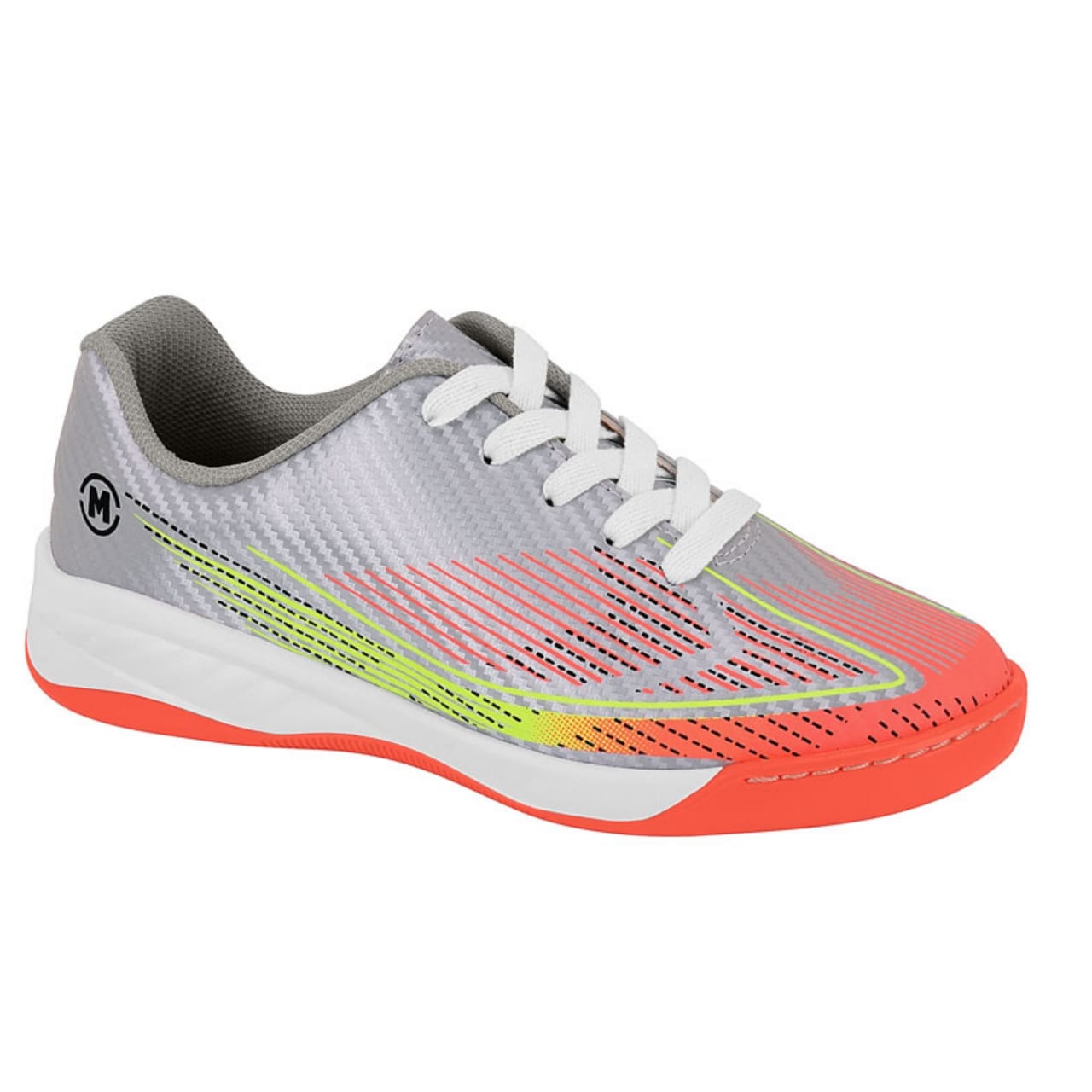 A Chuteira Infantil Menino Molekinho Strike- Cinza/ Amarelo Neon/ Laranja é ideal para crianças que gostam de conforto e desempenho nas atividades do dia a dia e nos esportes. Com design moderno em tom cinza com detalhes em laranja e verde neon, oferece um visual dinâmico e cheio de estilo.