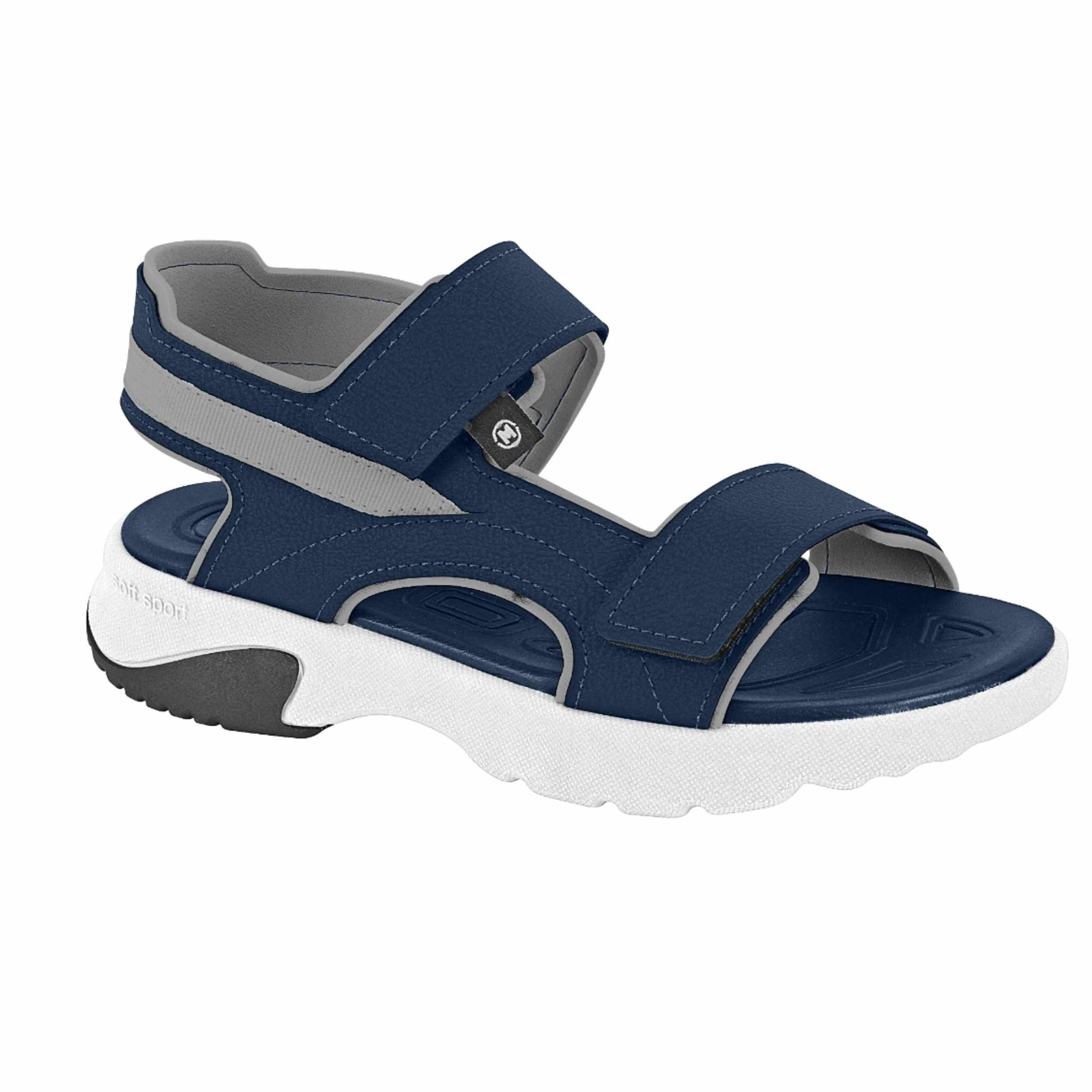 Sandália infantil, ideal para meninos, confeccionada em material sintético e fechamento por tira com velcro.
