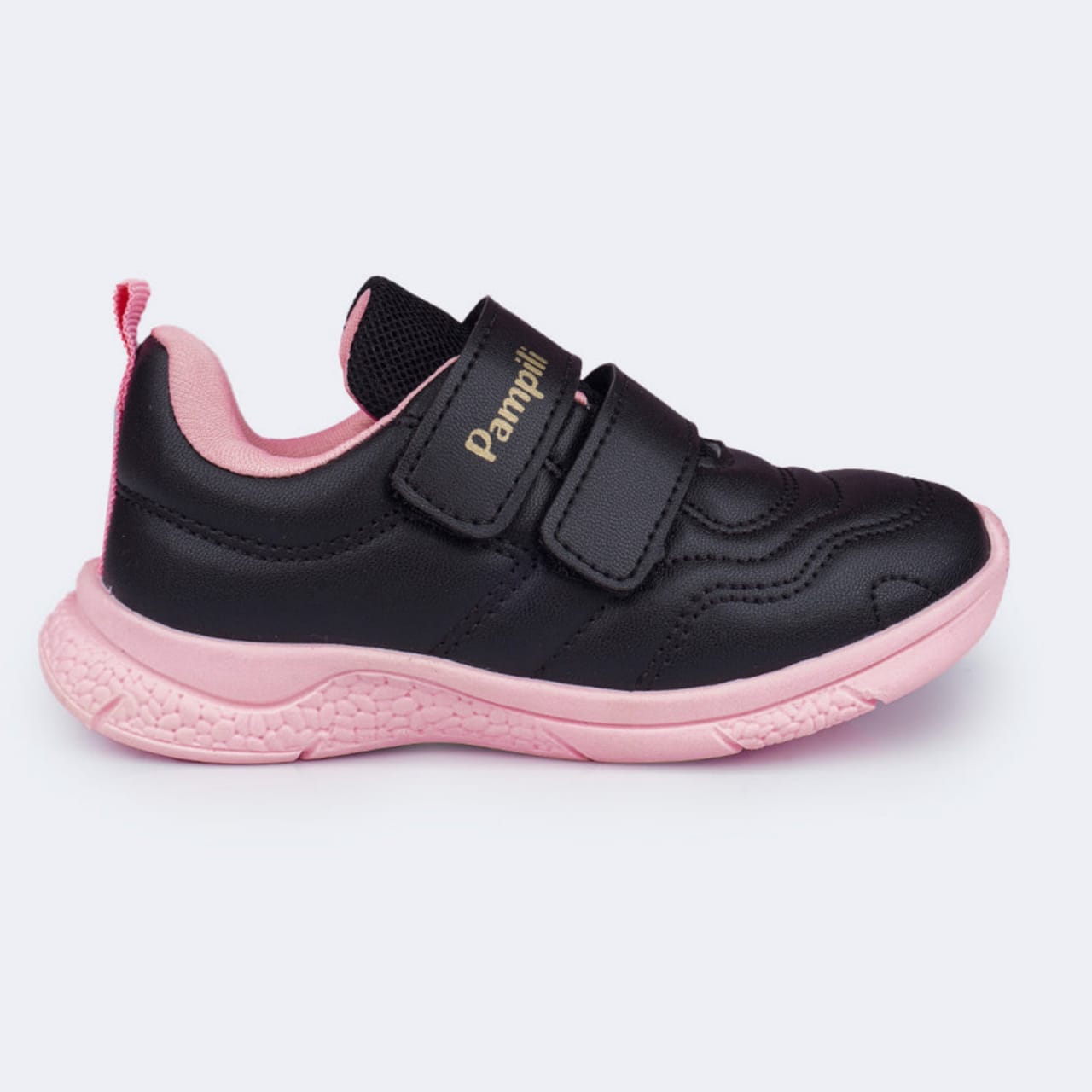 Leve e flexível, este tênis infantil une praticidade e conforto em um design prático. O modelo combina as cores Preto e rosa, trazendo um visual perfeito para todas as ocasiões — da escola aos passeios em família.