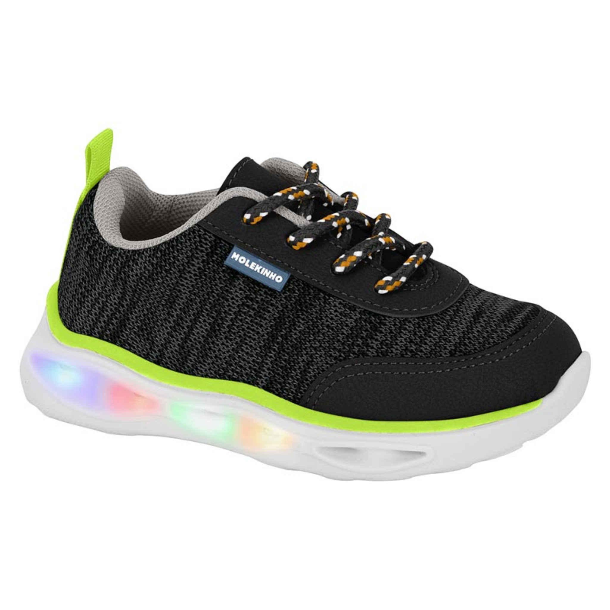Tênis Infantil Molekinho (Com Luz) confeccionada em materiais alternativos de alta qualidade. Detalhe: Aplicação do logo da marca e possui cadarço para facilitar o calce. Possui sequencia de luzes que acende ao caminhar*