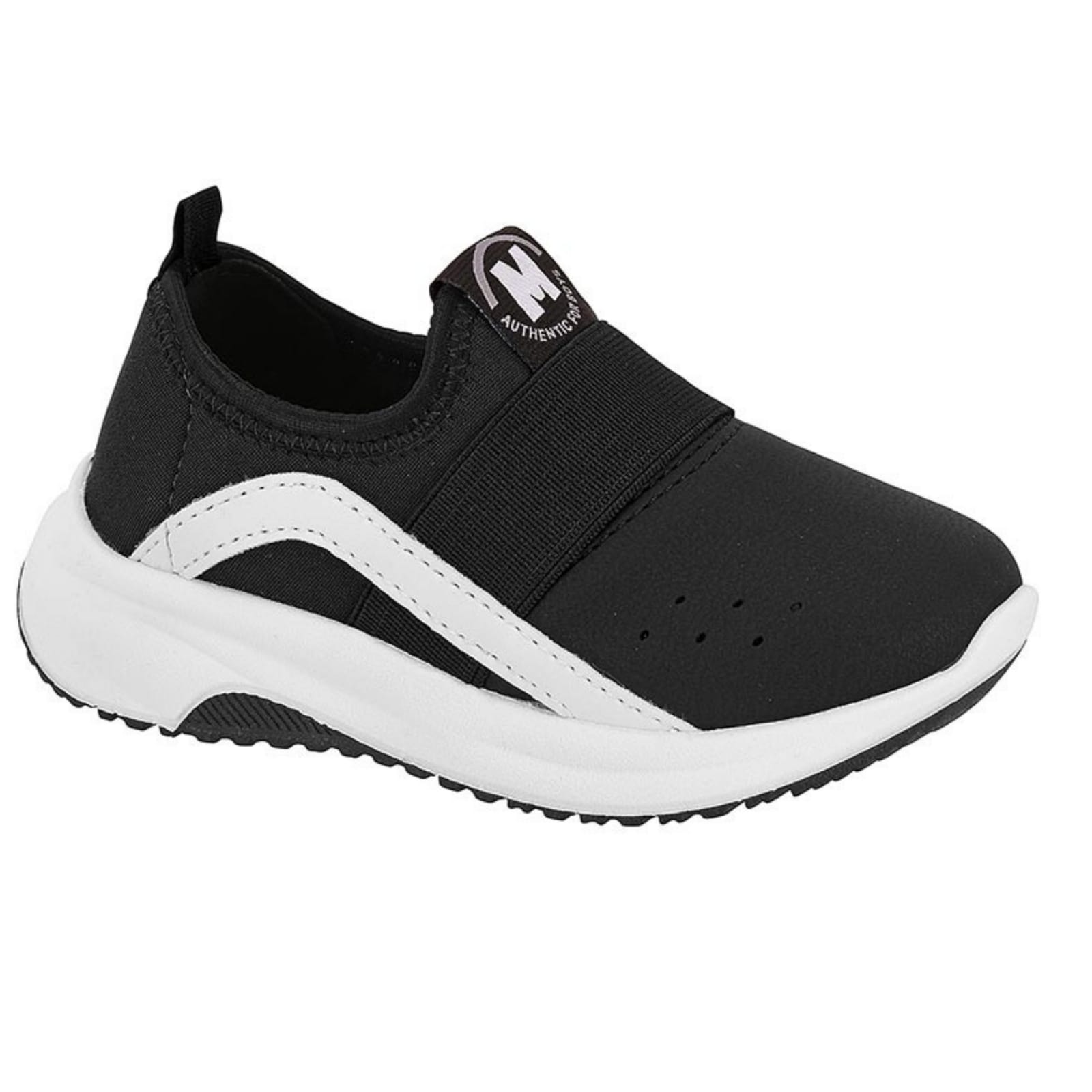 Tênis infantil Molekinho estilo slip on, ideal para o dia a dia das crianças. Possui calce fácil com elástico no peito do pé, proporcionando mais autonomia e conforto. Confeccionado em material macio e respirável, com solado leve e antiderrapante que garante segurança ao caminhar. Design moderno nas cores preto e branco, combinando com diversos looks escolares e casuais. Perfeito para acompanhar a rotina com conforto e praticidade.